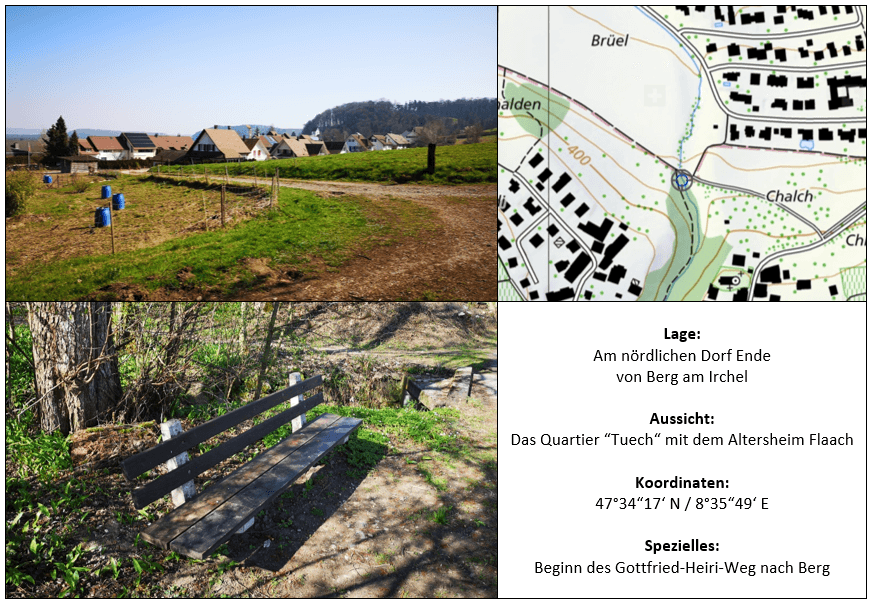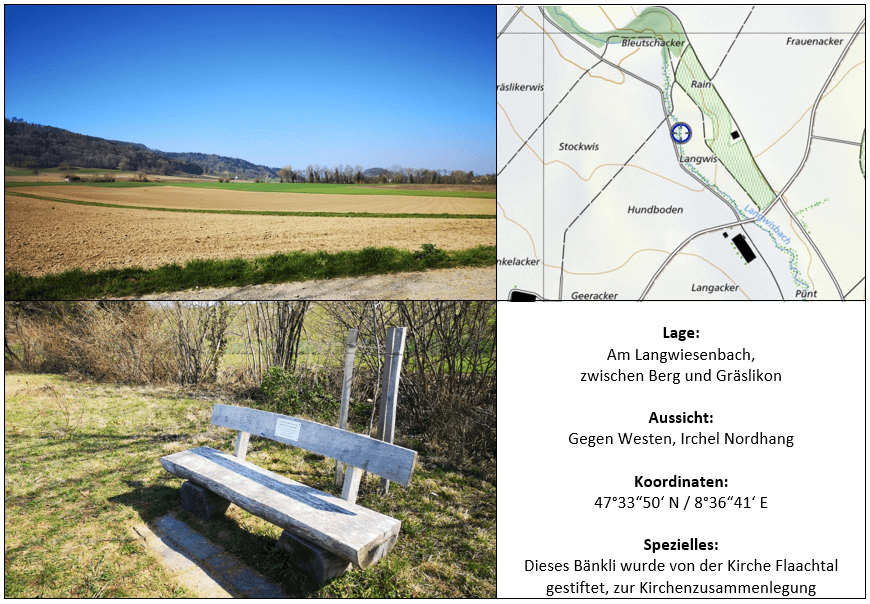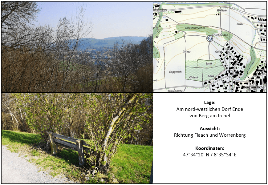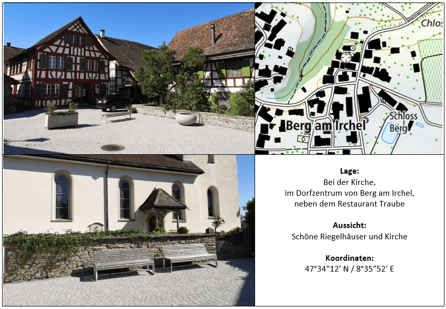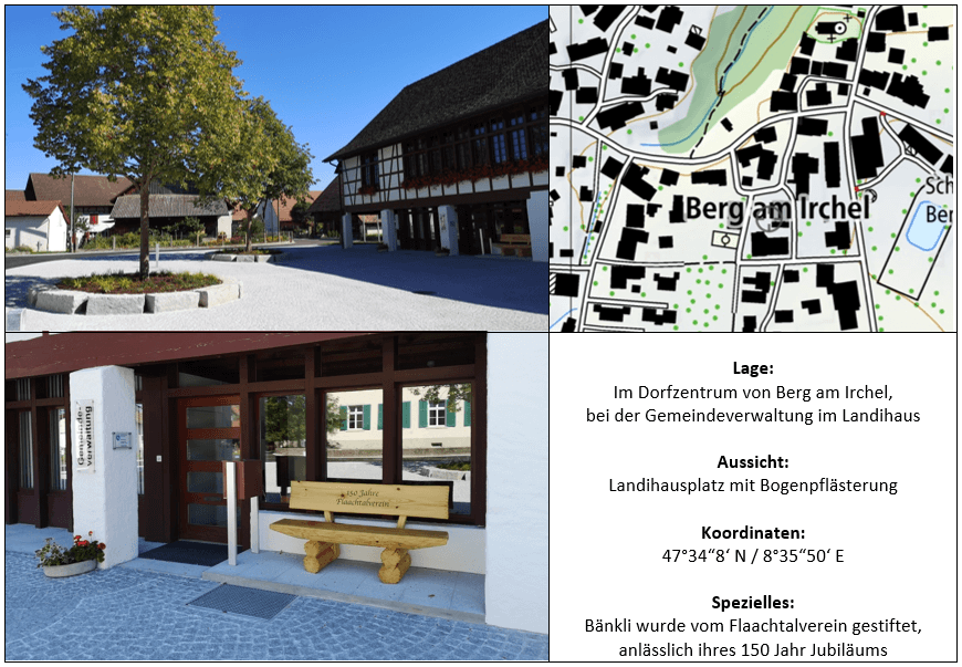 Auf dem Gebiet der Gemeinde Berg am Irchel gibt es sehr viele gemütliche Bänkli zum Ausruhen oder um die Aussicht zu geniessen. Diese Zusammenstellung soll Ihnen einen Überblick verschaffen, wo sich diese Bänkli befinden und was Sie erwarten dürfen.